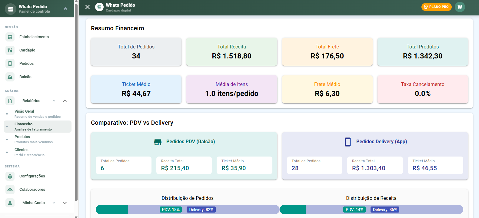 Relatórios detalhados sobre vendas, produtos mais populares, horários de pico e desempenho geral.